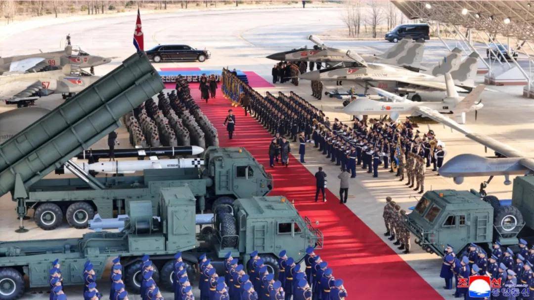 金正恩同志亲切祝贺激情欢呼的全体空军官兵,并表示相信英勇的空军武装力量的全体飞行员、指挥成员和官兵继续创造胜利神话为在光荣军旗上谱写的80年伟大沿革增光添彩,坚决维护我们国家的尊严和人民的幸福。