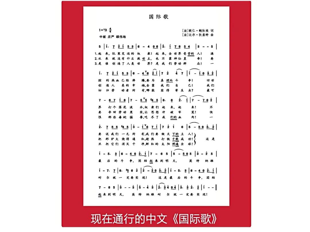 第一次将“法”文歌词原标题“L'Internationale”译为“国际歌”,从此《国际歌》的名称就固定下来。